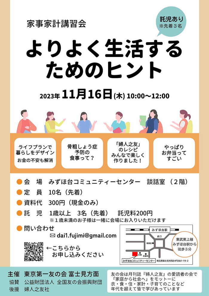東京第一友の会 〒171-0021 東京都豊島区西池袋2-20-11電話 03-3971-9602 (火・金の10時~15時までにお願いします)