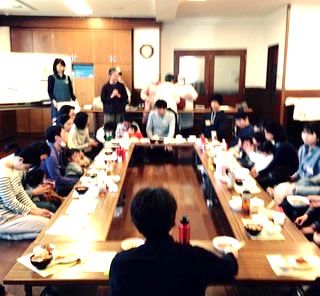 昨年6月の参加者リクエストから、1階でお父さんと子どものおさなごの集い、2階の調理実習室では、食研究グループとお母さんによる昼食作りをしました。 お母さんと別れ、お父さんと子どもだけでちょっと緊張したスタートでしたが、手遊びや鬼ごっこをするうちにどんどん元気になった子ども達、その後、初めての試みでしたが、男性スタッフとお父さんによる読書、話し合いが盛り上がりました。11時には暖かい手作りのお昼が2階から運ばれてきて家族一緒に 3.11を思い黙祷、いただきます!「大きな家族になって」過ごす時間を持ちました。