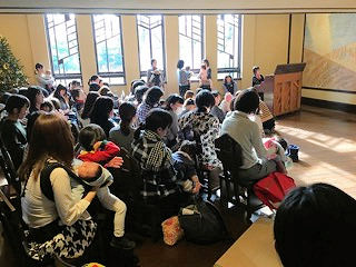| ◎一緒に考えよう「久しぶりに生活リズム」 * 底冷えのする寒い朝でしたが、たくさんの親子が集って、賑やかに。 国際結婚、海外からお里帰り、お仕事が休みで…色々な方が集まりました。さよならをしても「まだ帰りたくない〜。」というお子さんも。また次回お待ちしています! |