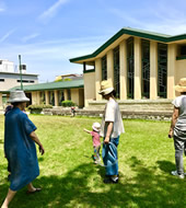| 5月22日の報告 よく晴れた空の下、みんなで明日館の芝生に出かけました。 |