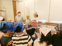 先生役の2人は当日の朝、 小友が始まる前に作り方を猛練習 |