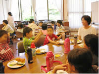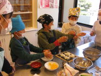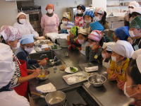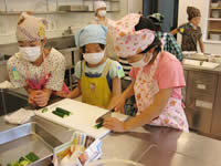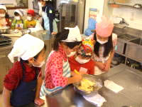 | 参加人数:小学生21人、お母さんスタッフ3人、実務スタッフ5人 メニュー:おにぎり、野菜の塩もみ |