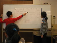 今日の先生役は5年生の女子。 手つきがとてもいい感じ。 |