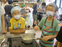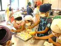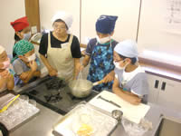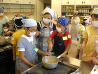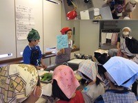 小さい人は台に乗って班長さんに教えてもらいます。 |
