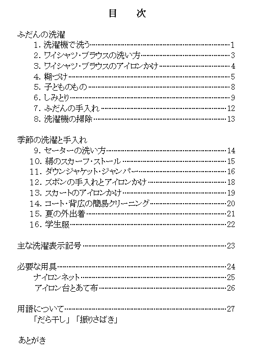 「洗濯カード」見本1(目次)